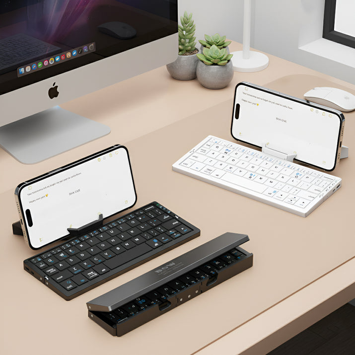 The Foldable Bluetooth Keyboard is your ultimate typing companion — designed for creators, travelers, and multitaskers. With its lightweight, pocket-sized design and universal Bluetooth compatibility, you can type comfortably on your phone, tablet, or laptop wherever you are.
